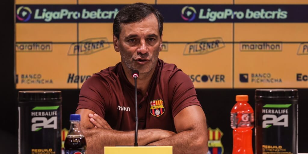 Esta mañana el DT Fabián Bustos ofreció una rueda de prensa previo al encuentro ante Delfín, este domingo en el Estadio Jocay de Manta.
