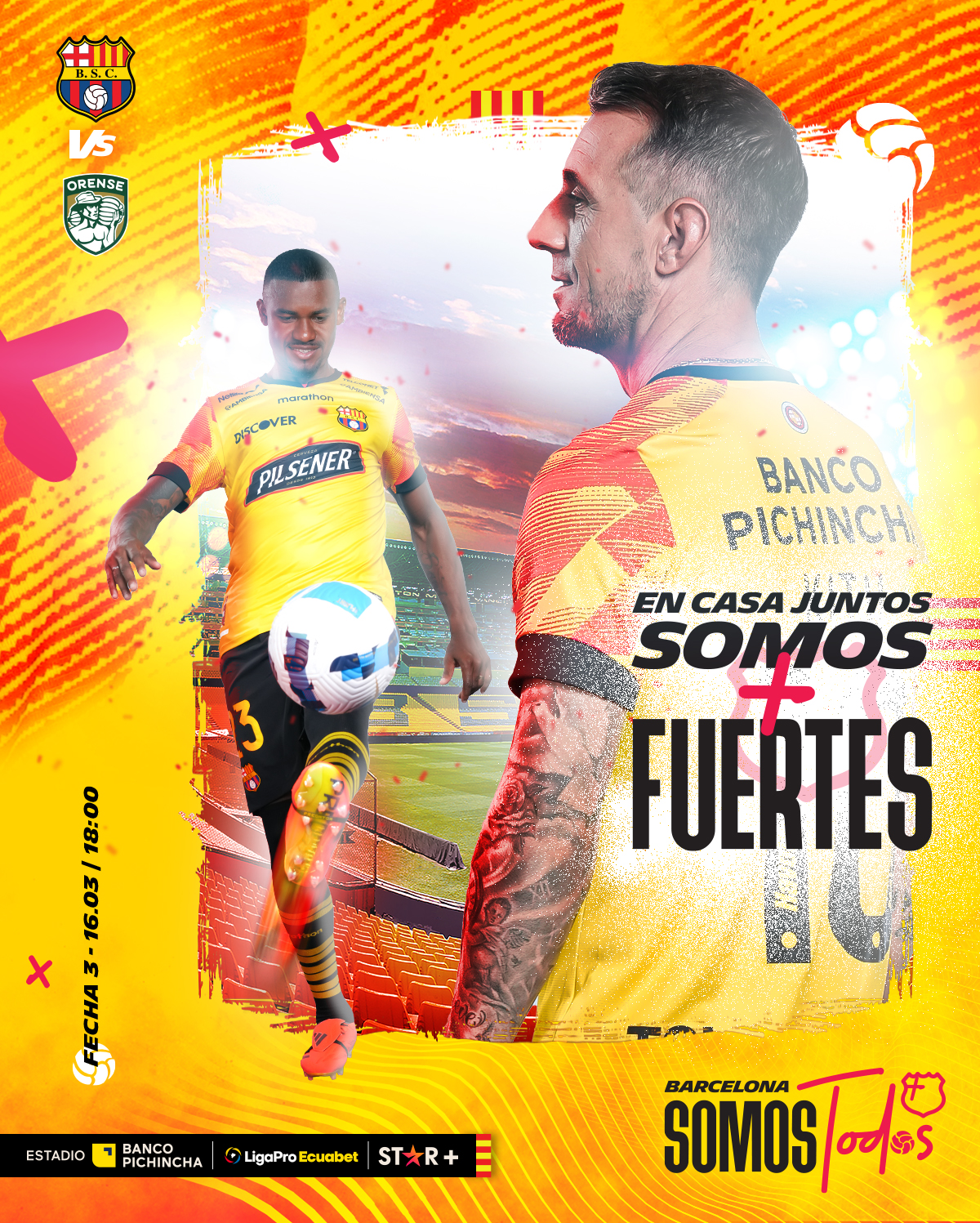 Barcelona Sporting Club da a conocer los valores, horarios y puntos de venta, del compromiso de su equipo principal ante Orense, este sábado 16 de marzo a las 18h00, por la LigaPro Ecuabet en el Estadio Banco Pichincha.