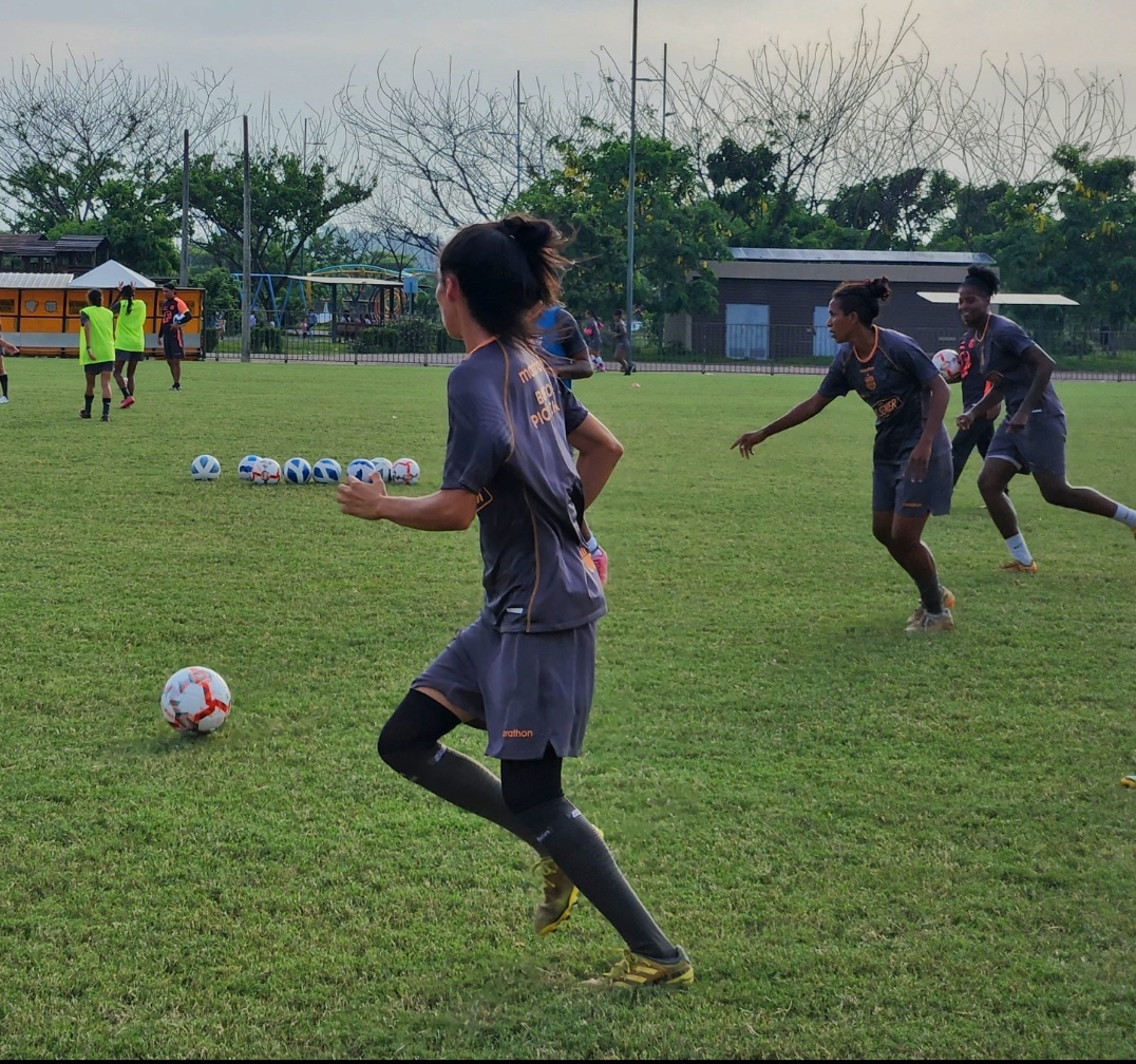 Durante la práctica de fútbol la entrenadora Wendy Villón, puntualizó movimientos técnicos – tácticos.