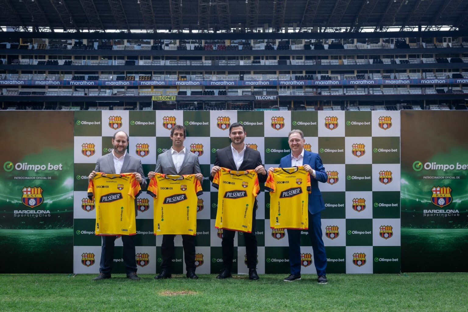 La presentación de este nuevo patrocinador se realizó durante una rueda de prensa en la que estuvieron presentes Antonio Alvarez, presidente de Barcelona; Santiago Schwartzmann, CEO de Olimpo bet; Alfonso Miranda, gerente de Marketing de esta empresa; Álex Aguinaga, gloria del fútbol ecuatoriano y embajador oficial de la marca; así como Carlos Álvarez, gerente comercial de BSC.
