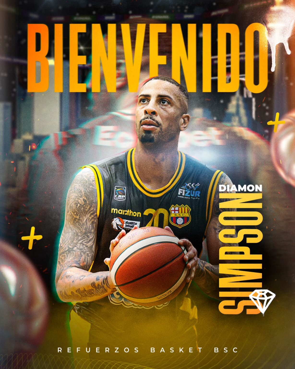 Diamon Simpson se suma a su compatriota Dazon Ingram y al ecuatoriano Engels Tenorio, como los refuerzos que han llegado en las últimas semanas a Barcelona para potenciar a la plantilla en lo que resta de la Liga Básquet Pro.