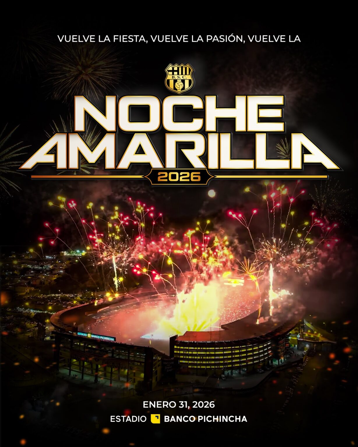 Barcelona Sporting Club informa a sus socios, copropietarios e hinchas que se realizará la preventa de boletos para la Noche Amarilla 2026 durante tres días: