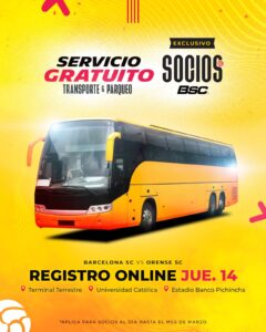 Estimados Socios: Por medio del presente, informamos el proceso para acceder al servicio gratuito de parqueos y traslados en buses para el partido correspondiente a la