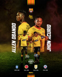 Barcelona Sporting Club suma dos elementos a la Selección Nacional de Fútbol Sub-17, que disputará el Sudamericano de dicha categoría. Jhon Acurio, delantero de 16