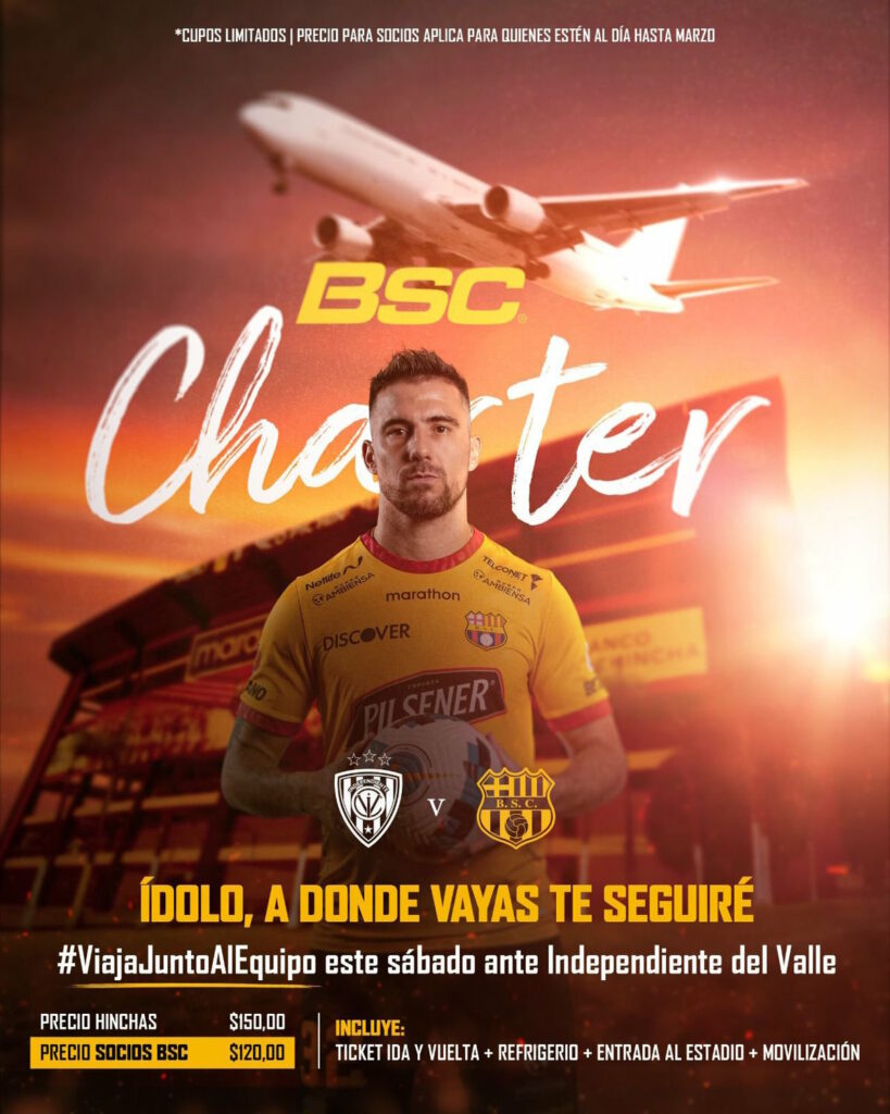 Viaja con el equipo a Quito, para un partido más de la LigaPro Bet593. $150 por persona y precio especial