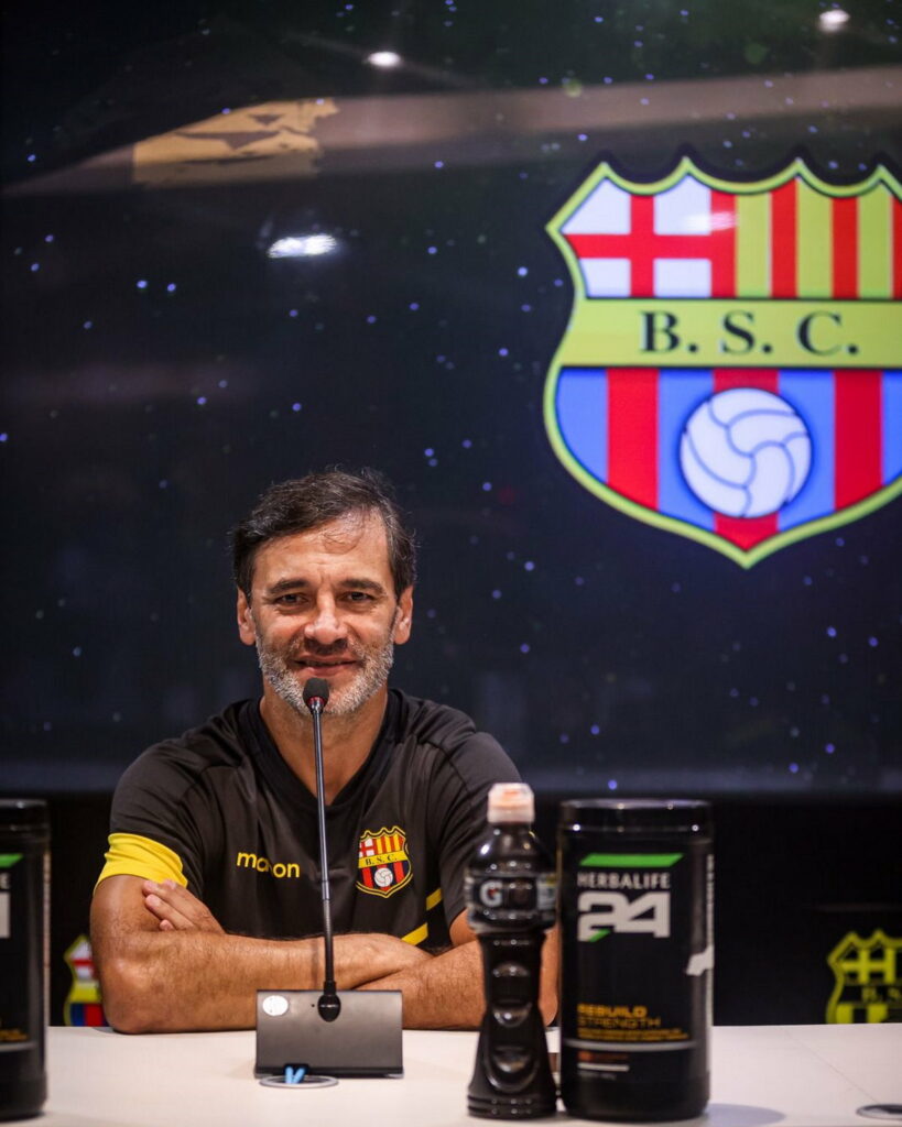 Fabián Bustos ofreció una rueda de prensa antes del Clásico del Astillero entre Barcelona SC y el CS Emelec. El