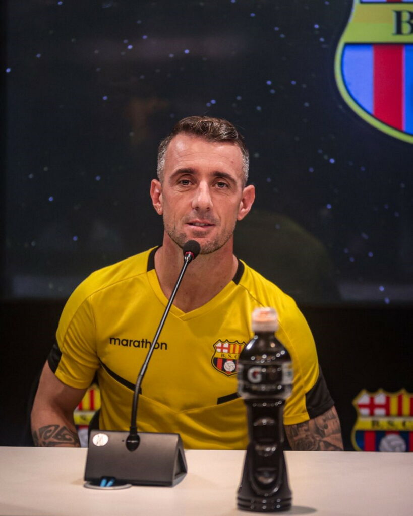 Damián Díaz ofreció una rueda de prensa antes del partido entre Barcelona SC y LDUQ. Del triunfo en Machala, el