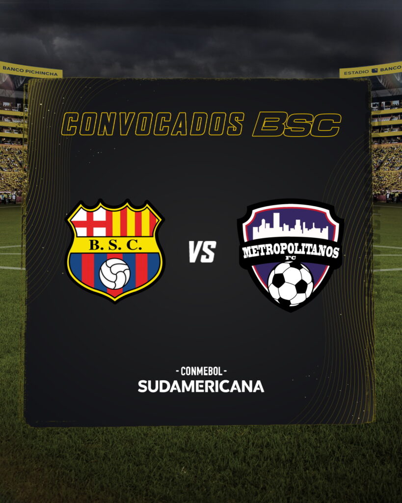 Nómina de Barcelona Sporting Club para enfrentar al Metropolitanos Fútbol Club de Venezuela, hoy a las 19h30 en el Estadio