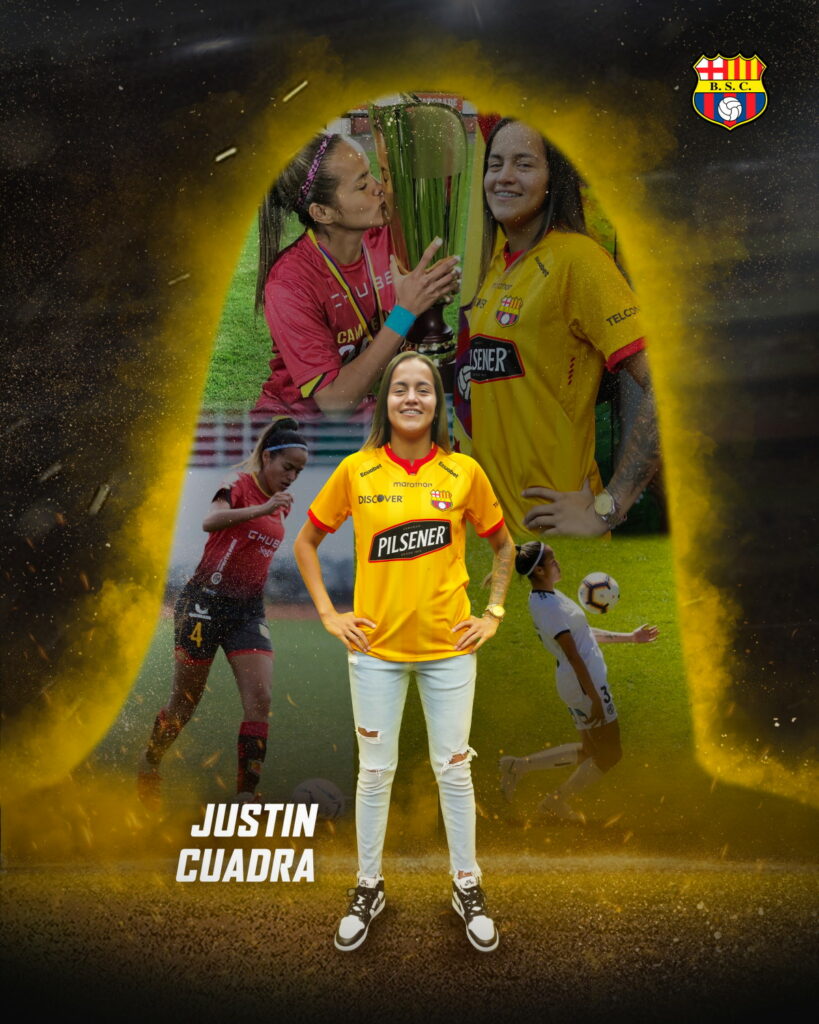 Barcelona Sporting Club ha contratado a Justin Cuadra, defensora de 23 años. Cuadra fue bicampeona del fútbol ecuatoriano en las