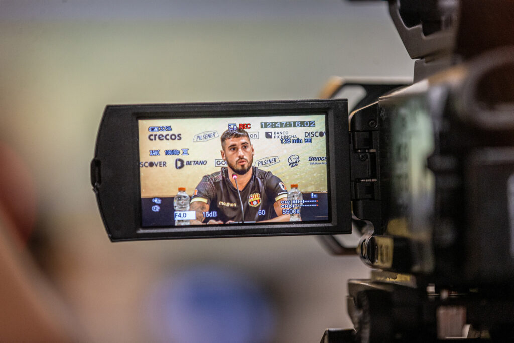 Francisco Fydriszewski, que marcó un doblete frente a Gualaceo, estuvo hoy en rueda de prensa respondiendo ante los medios de